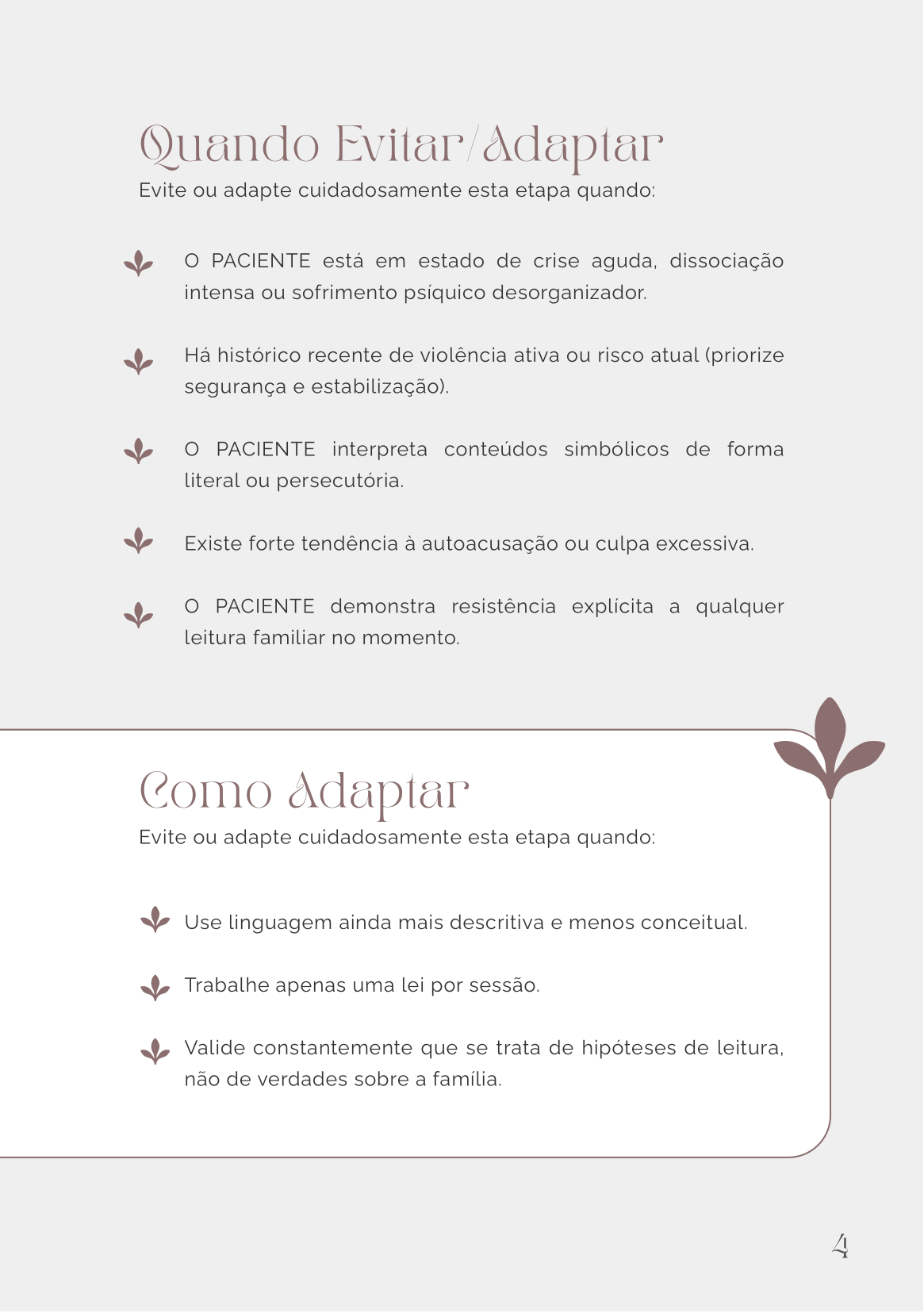 Sim. O conteúdo foi pensado para acompanhar tanto pacientes em início de processo quanto em fases mais profundas da terapia. É especialmente indicado para quem apresenta conflitos familiares, repetições de padrão, culpas herdadas ou vínculos rompidos.